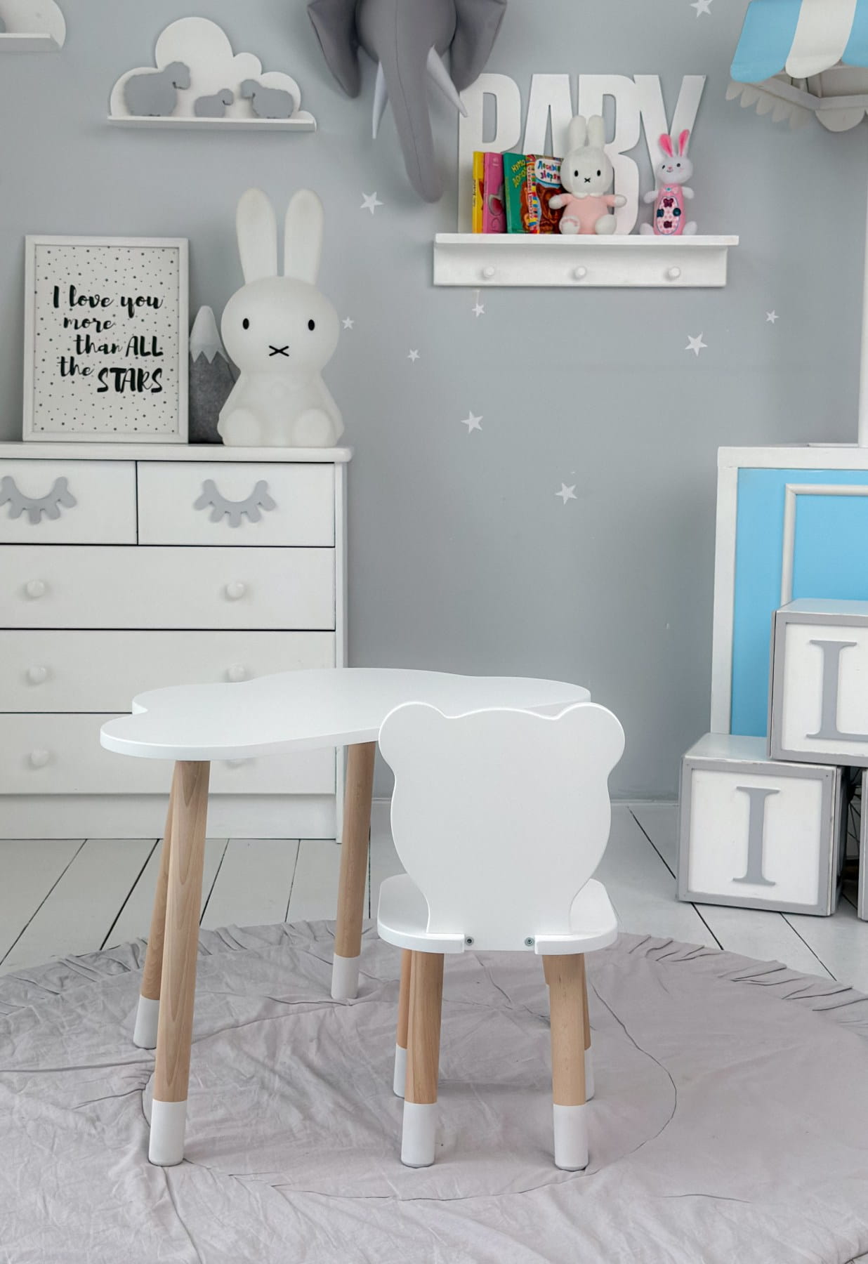 Stolik dziecięcy z krzesełkiem w kształcie chmurki – praktyczność i radość w jednym