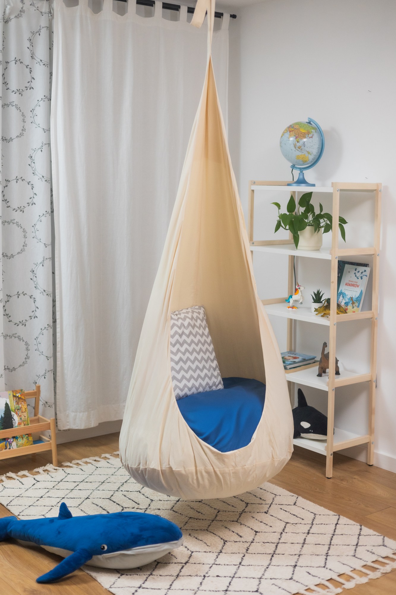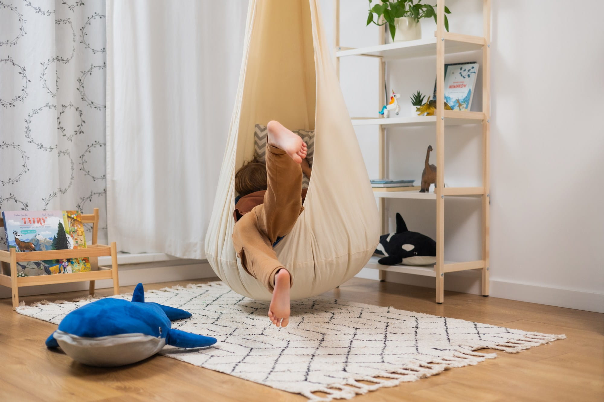 Możesz zawiesić kokon w pokoju dziecięcym, na balkonie, tarasie czy w ogrodzie. To nie tylko świetna zabawa, ale także sposób na rozwój motoryczny i sensoryczny dziecka!