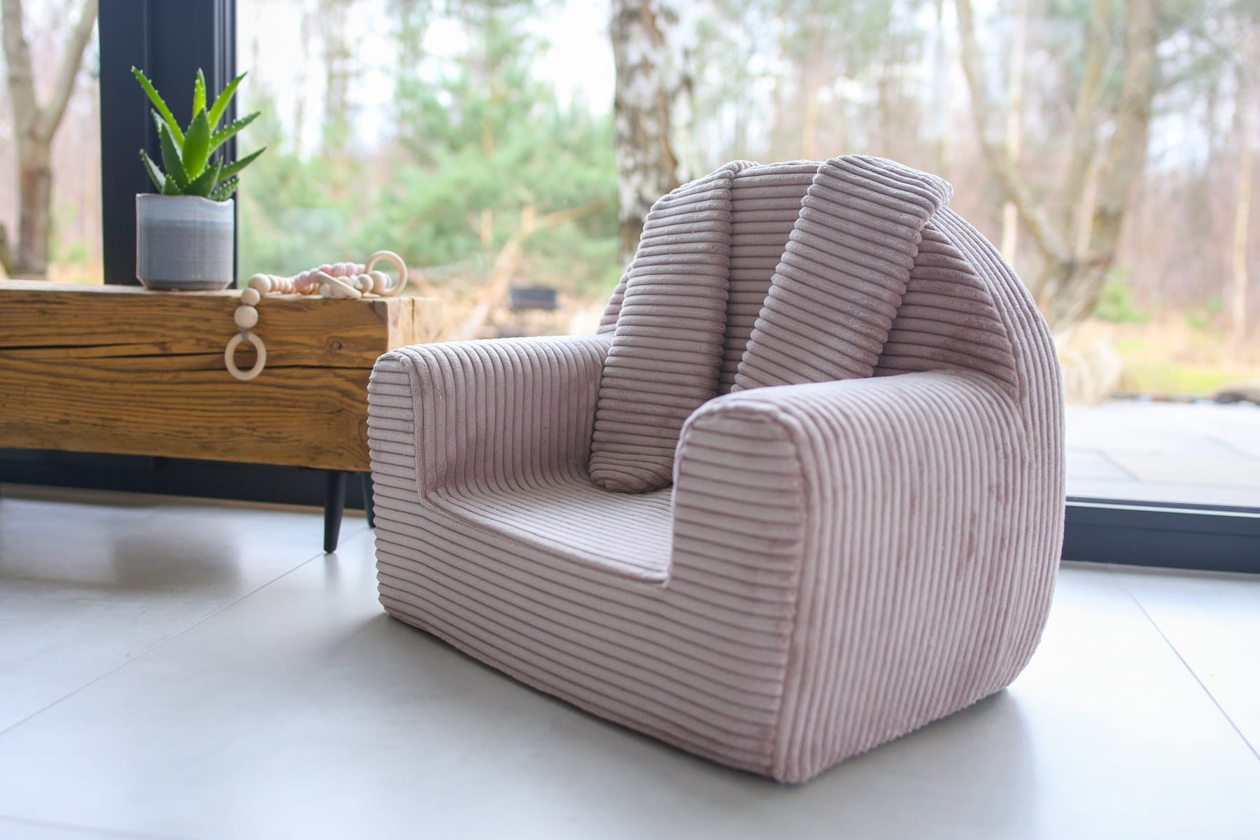 Komfort i Wygoda: Wykonany z wysokiej jakości pianki poliestrowej, fotelik dla dziecka zapewnia miękkość i wygodę, zapewniając maluchowi przyjemne miejsce do zabawy i odpoczynku.