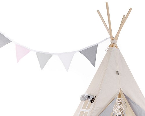 Girlanda może być dobrana do zestawu z namiotem tipi, koszem na zabawki i łapaczem snów.
