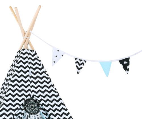 Girlanda może być dobrana do zestawu z namiotem tipi, koszem na zabawki i łapaczem snów.