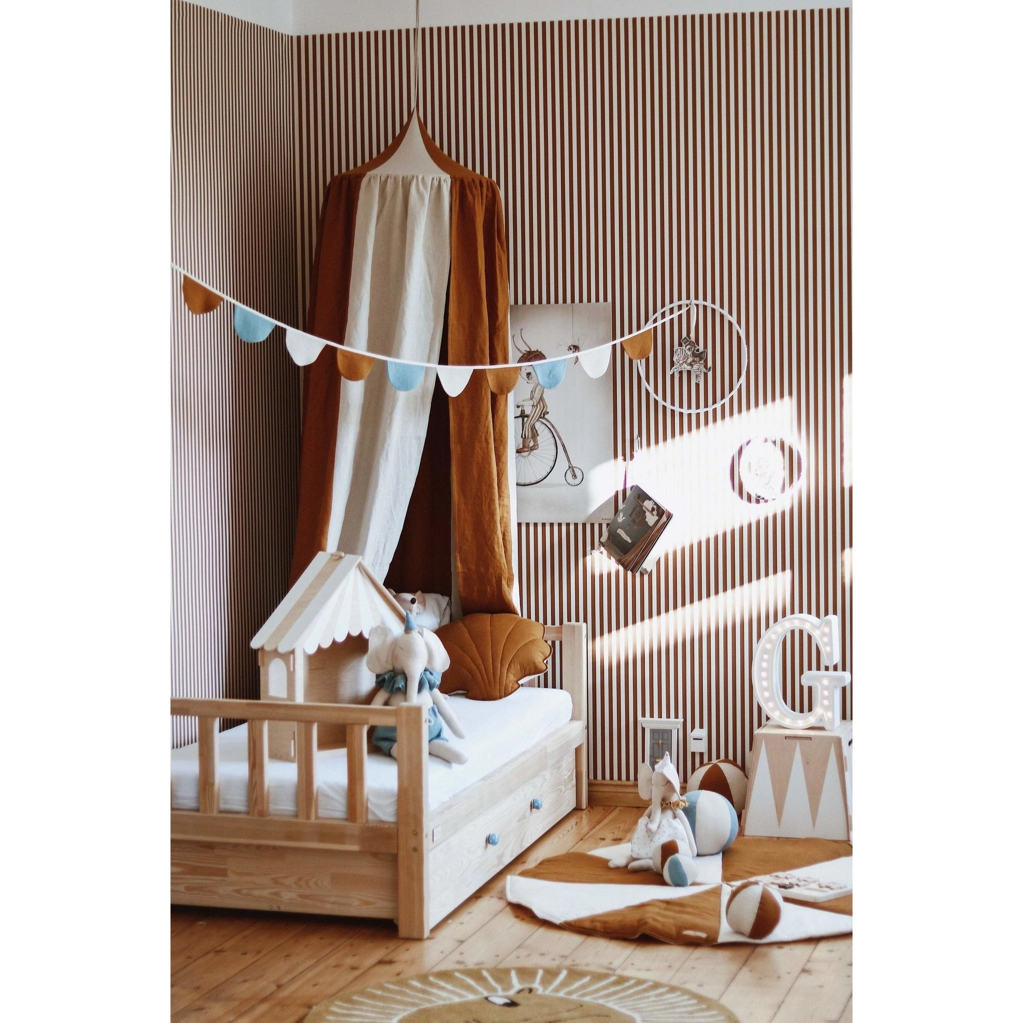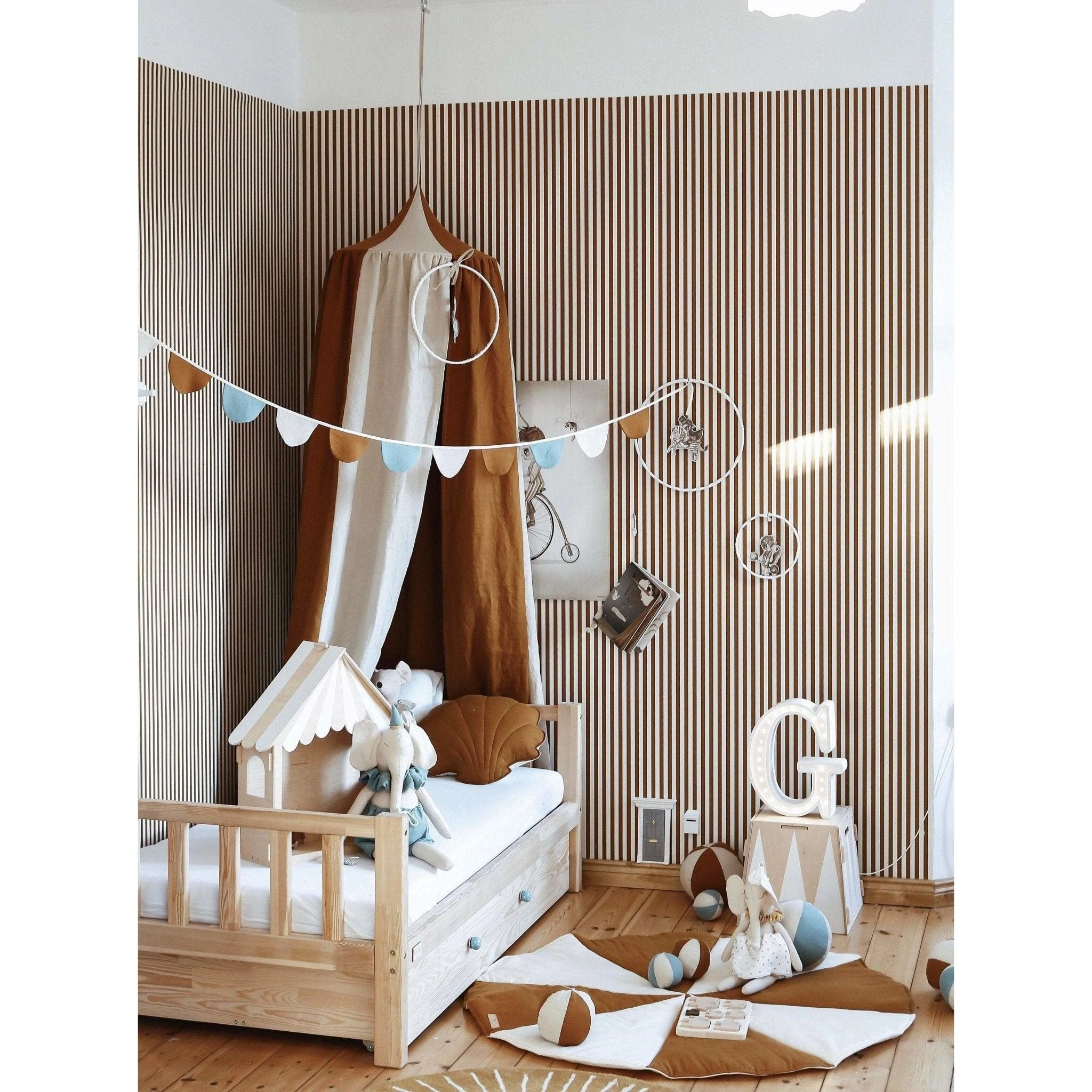 Doskonale sprawdzi się z innymi produktami w podobnej kolorystyce takimi jak poduszki, pufy, baldachimy czy namioty tipi.
