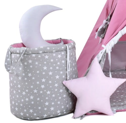 - Kosz na zabawki wykonany jest ze 100% bawełny wypełniony włókniną antyalergiczną.