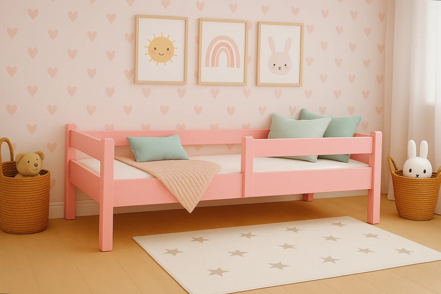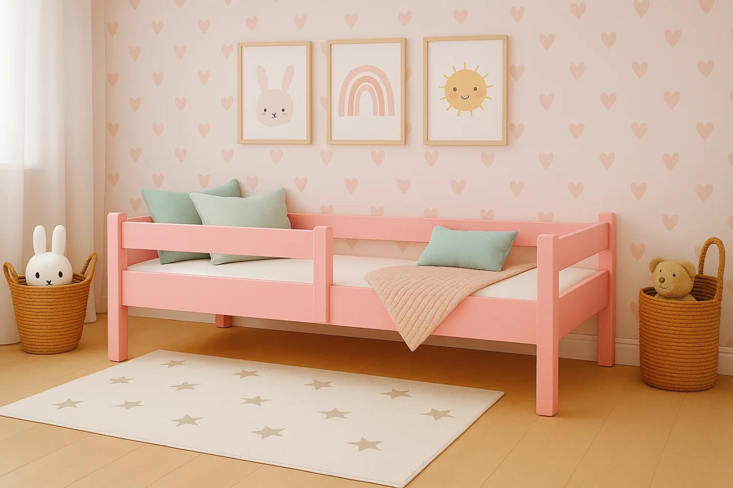 Łóżko dziecięce z barierkami Japońskie Montessori Różowe