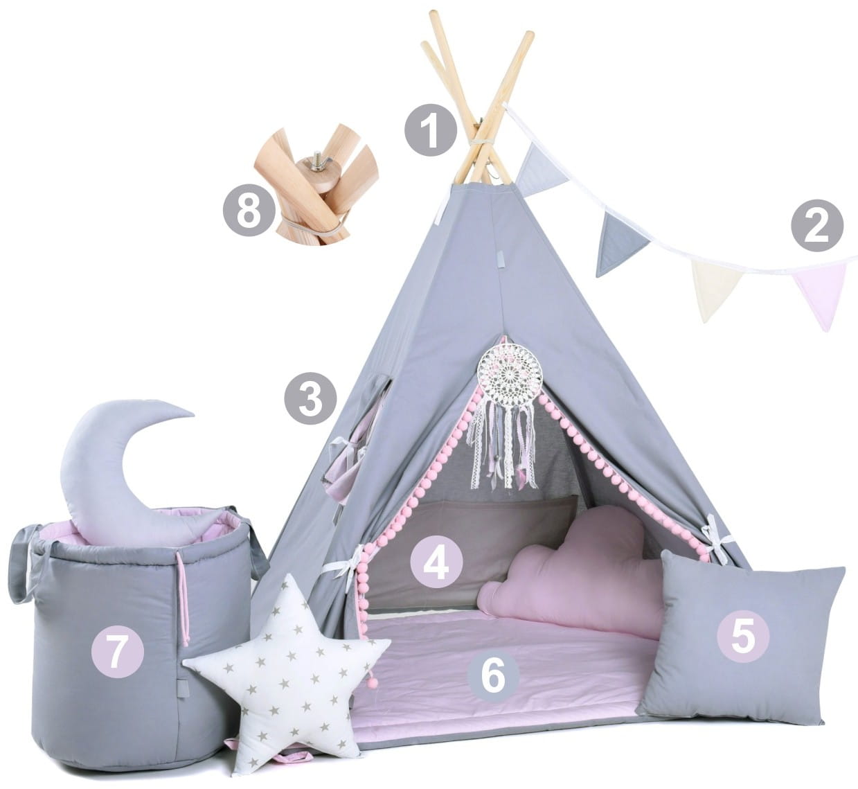 Nasze małe szkraby wręcz uwielbiają różnego rodzaju namioty, kryjówki, zakamarki czy też małe domki – takie miejsca dają dziecku mnóstwo radości podczas zabawy oraz bezpieczny azyl i miejsce na relaks. W rolę takiego miejsca idealnie wpasuje się Namiot tipi dla dzieci, który oferujemy w przeróżnej kolorystyce.