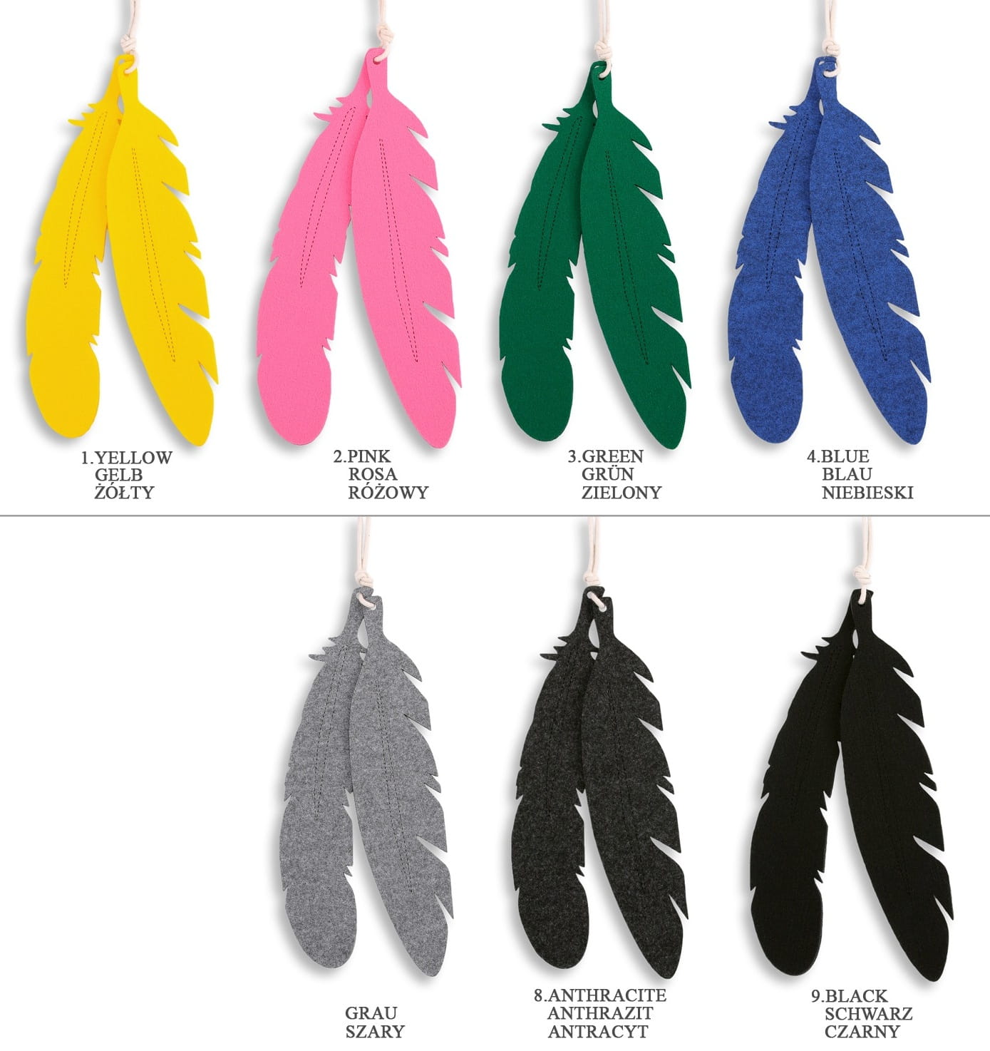 - Gratis! Do każdego tipi dołączone dwa dekoracyjne duże pióra z kolorowego filcu - kolor do wyboru. Wielkość piór ok. 35cm.