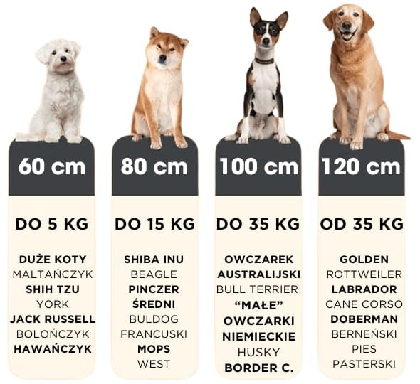 80 cm – Doskonałe dla średnich psów, np. Beagle czy Cocker Spaniel.