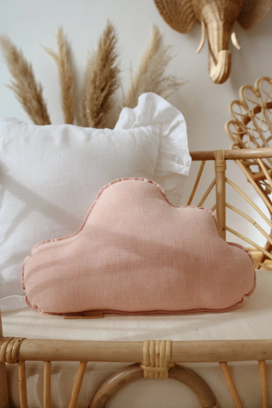 Poduszka lniana jest w kształcie chmurki dostępnej w różnych wersjach kolorystycznych.