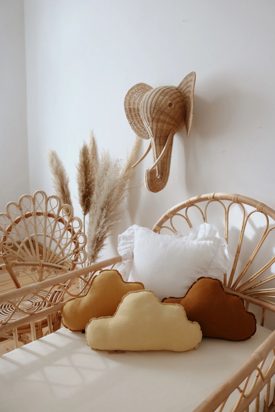 Poduszka lniana jest w kształcie chmurki dostępnej w różnych wersjach kolorystycznych.