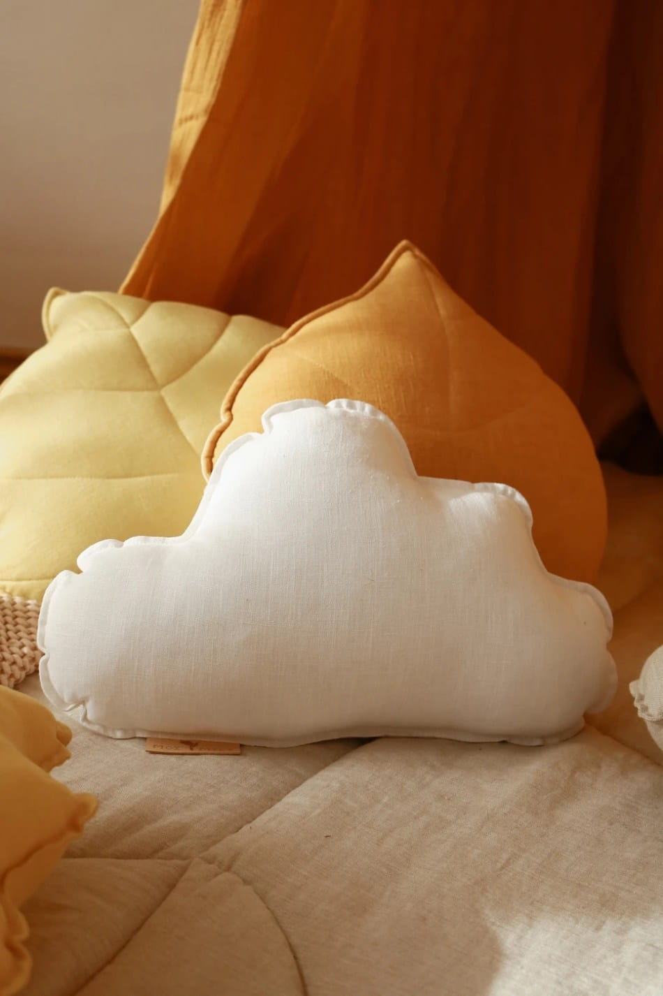 Poduszka lniana jest w kształcie chmurki dostępnej w różnych wersjach kolorystycznych.