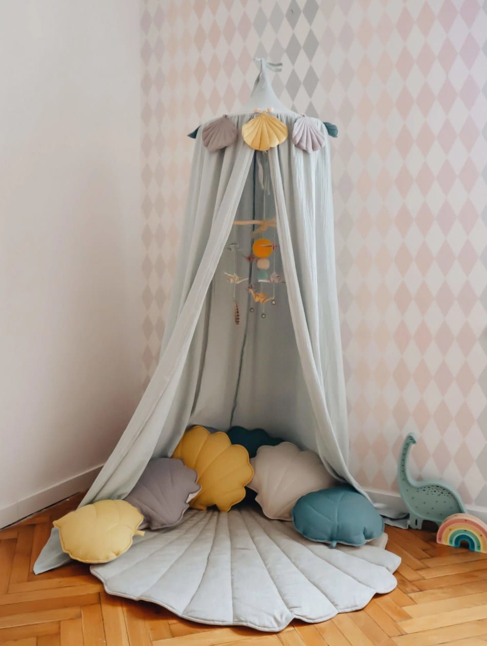 Kładąc poduszki dekoracyjne na łóżko lub obok tipi podkreślisz niesamowity charakter pokoju dziecięcego.