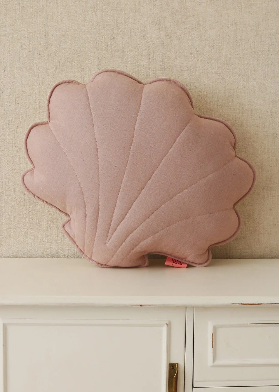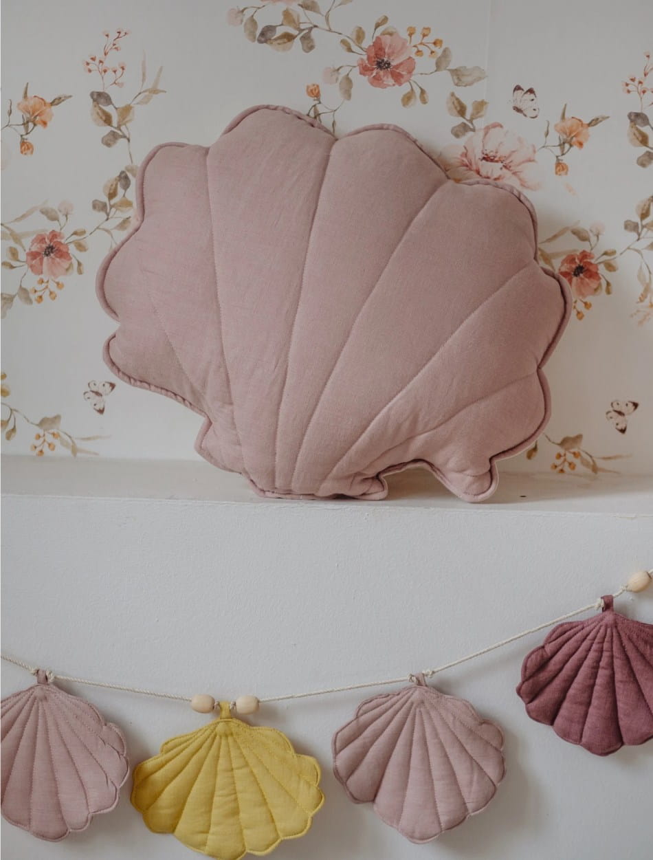Poduszka lniana jest w kształcie muszli dostępnej w różnych wersjach kolorystycznych.