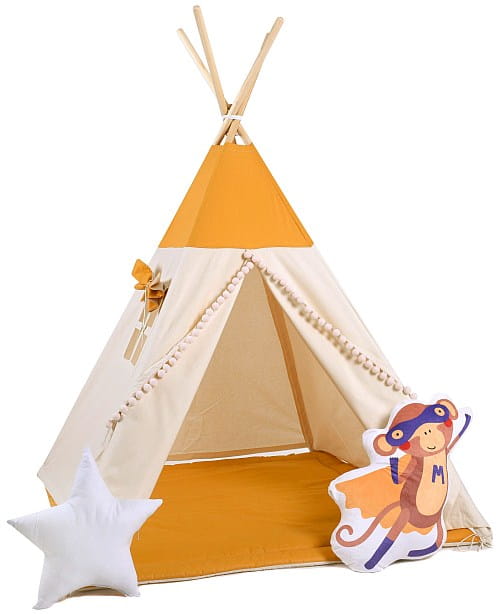 Kładąc poduszki dekoracyjne na łóżko lub obok tipi podkreślisz niesamowity charakter pokoju dziecięcego.