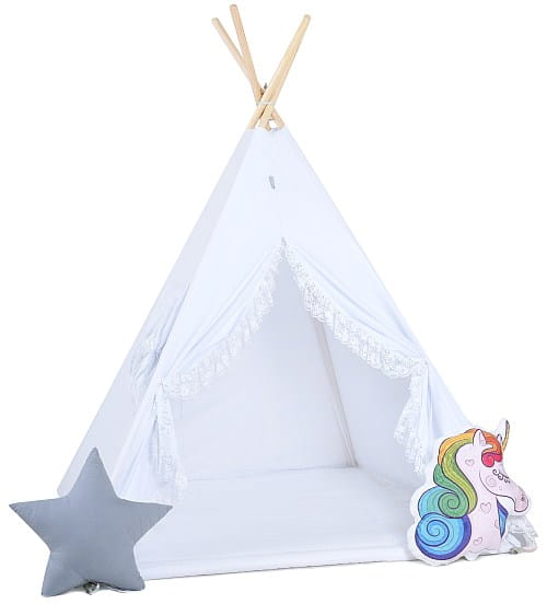 Kładąc poduszki dekoracyjne na łóżko lub obok tipi podkreślisz niesamowity charakter pokoju dziecięcego.