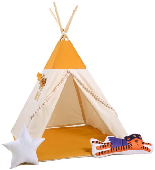 Kładąc poduszki dekoracyjne na łóżko lub obok tipi podkreślisz niesamowity charakter pokoju dziecięcego.
