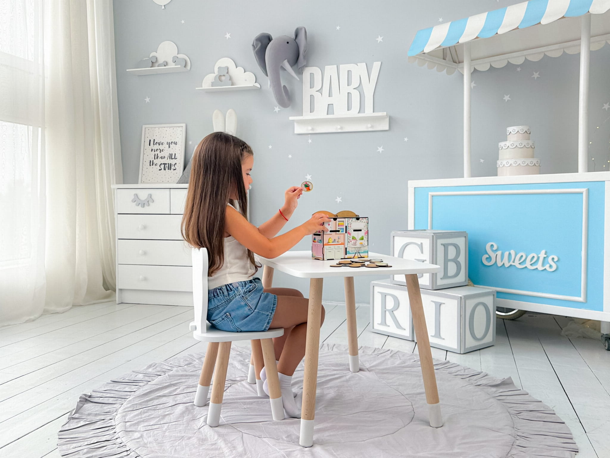 Z naszym stolikiem każde dziecko poczuje się wyjątkowo. Idealny do tworzenia pierwszych rysunków, rozwiązywania zadań czy budowania z klocków. Solidność, estetyka i funkcjonalność w jednym produkcie, który ułatwi organizację i wprowadzi harmonię w pokoju Twojej pociechy.