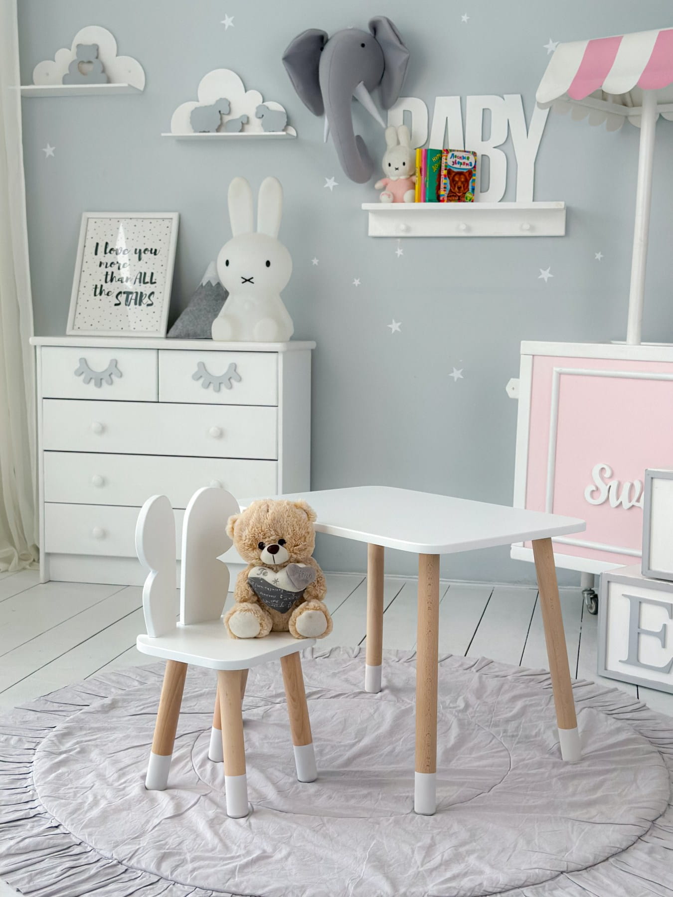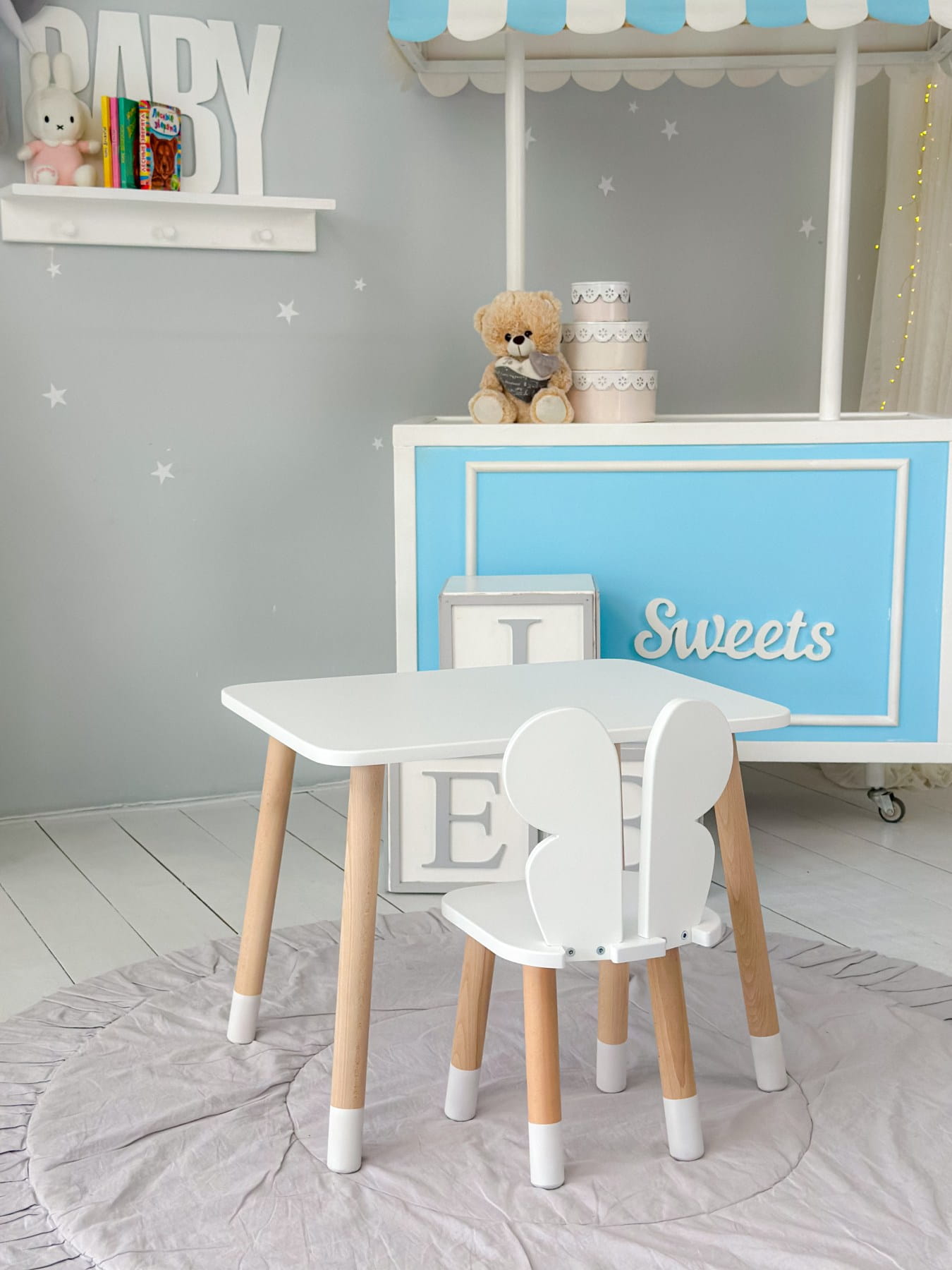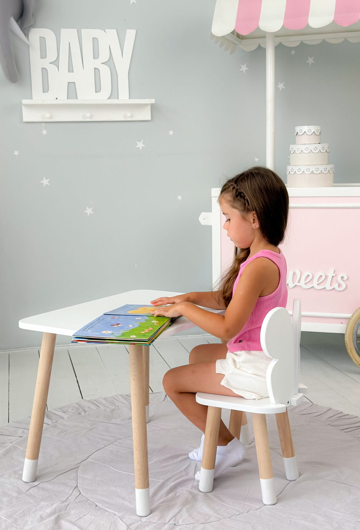 Wymiary stolika: 46x60x45 cm – idealnie dopasowany do dzieci w wieku 1,5–7 lat.