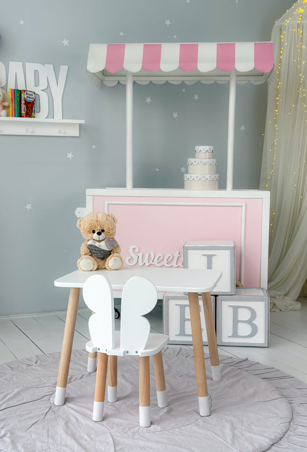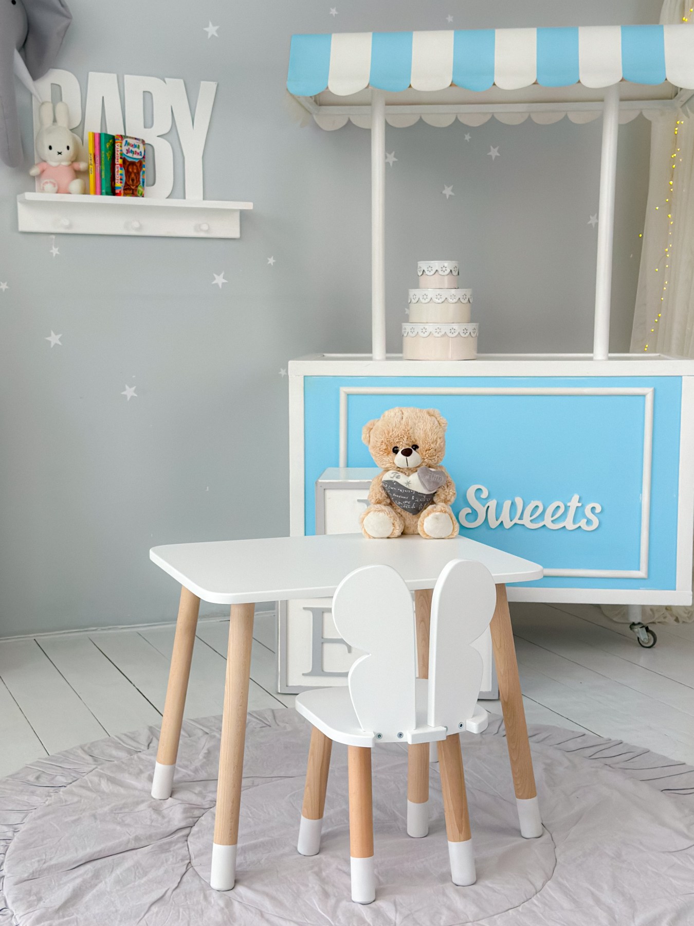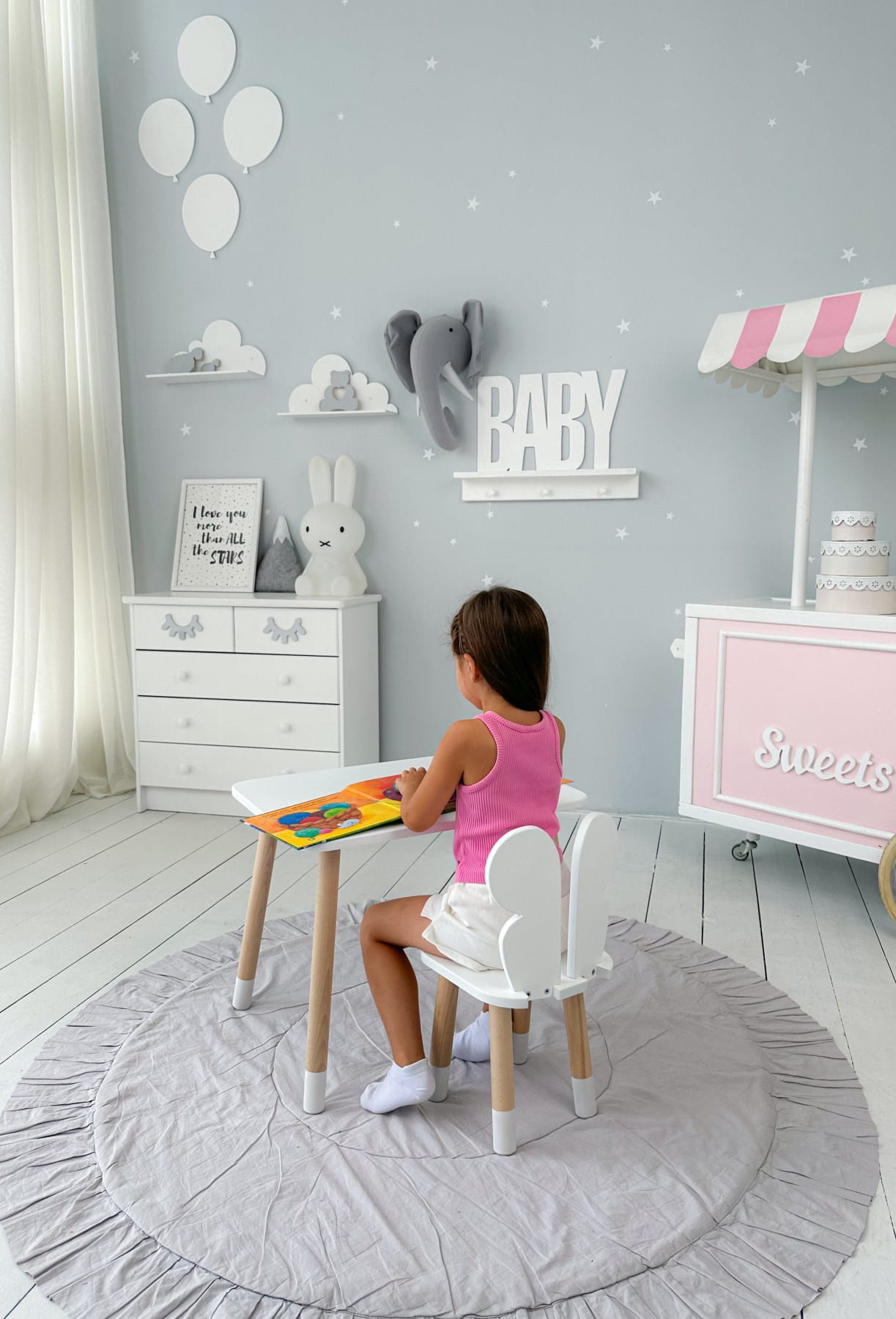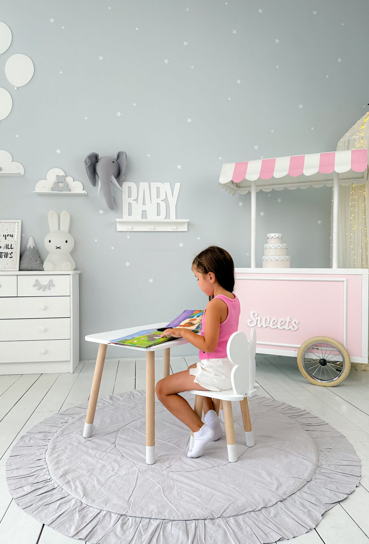 Wymiary stolika: 46x60x45 cm – idealnie dopasowany do dzieci w wieku 1,5–7 lat.