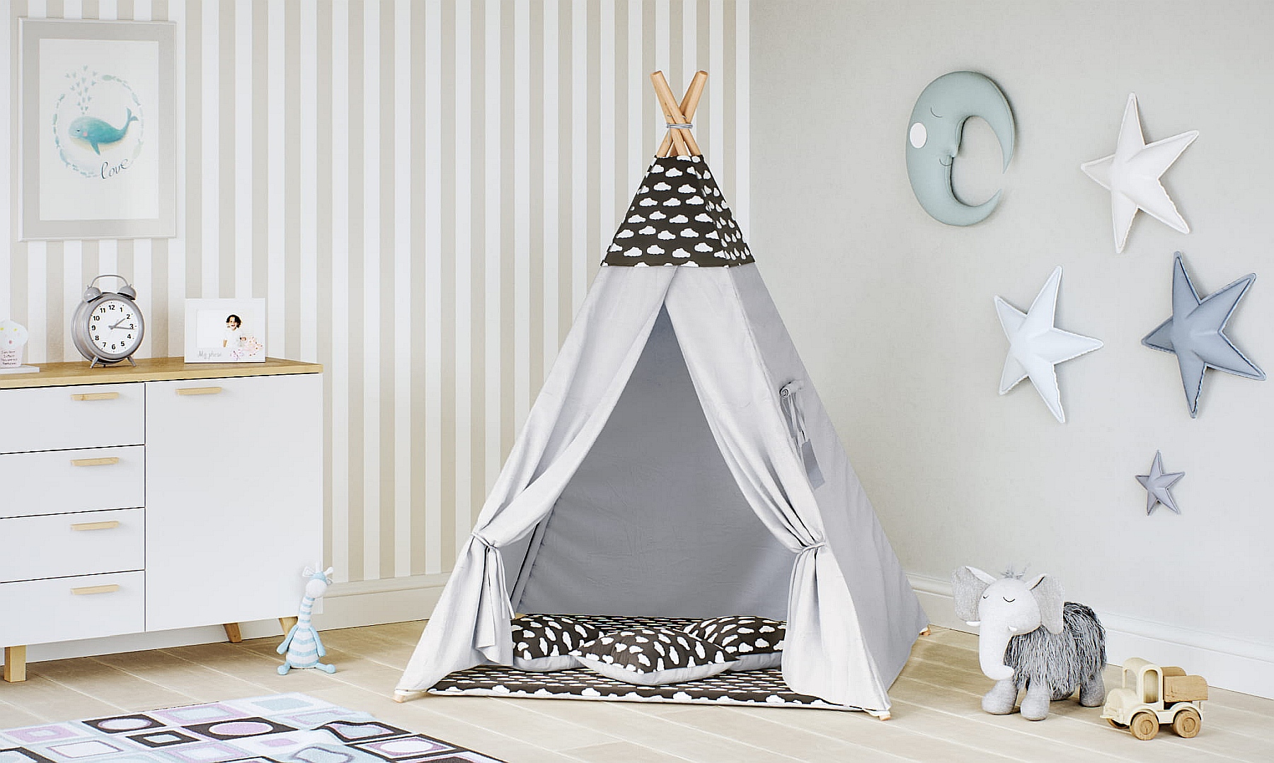 Tipi dla dzieci Chmurki czarne szary