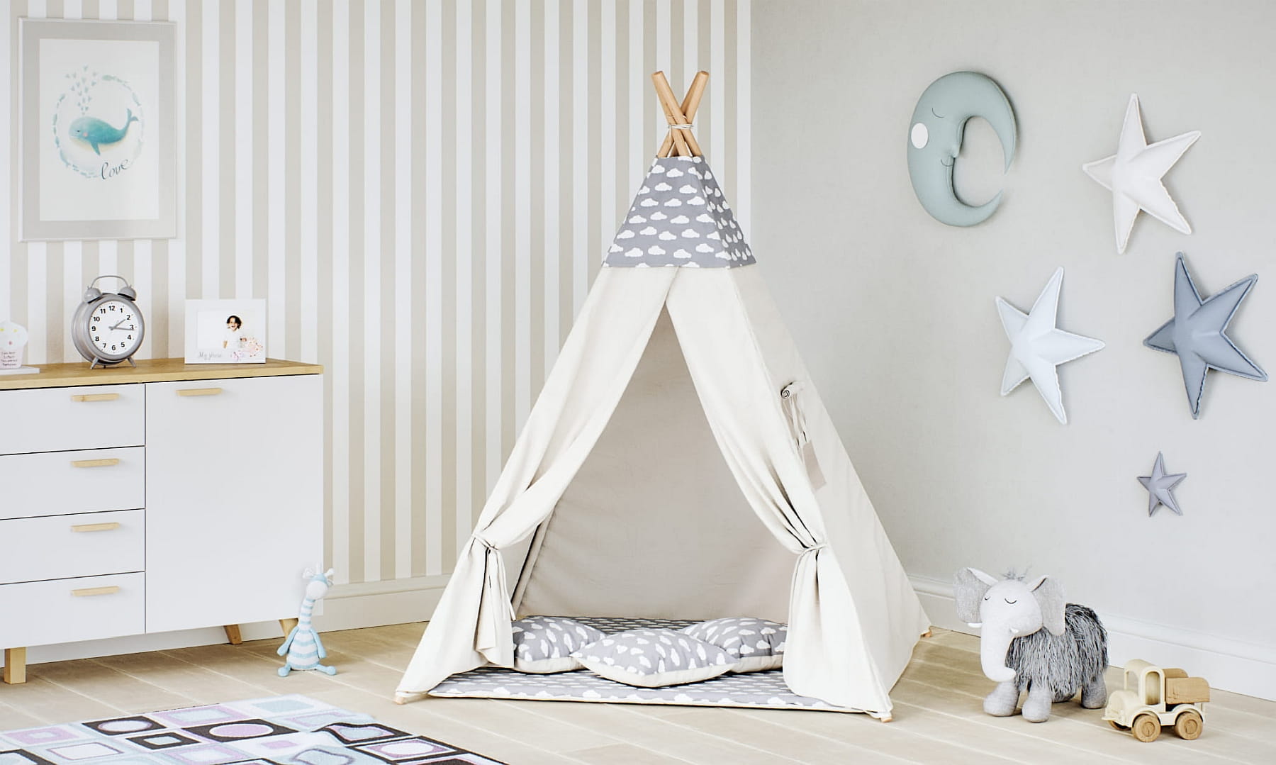 Tipi dla dzieci Chmurki szare beż