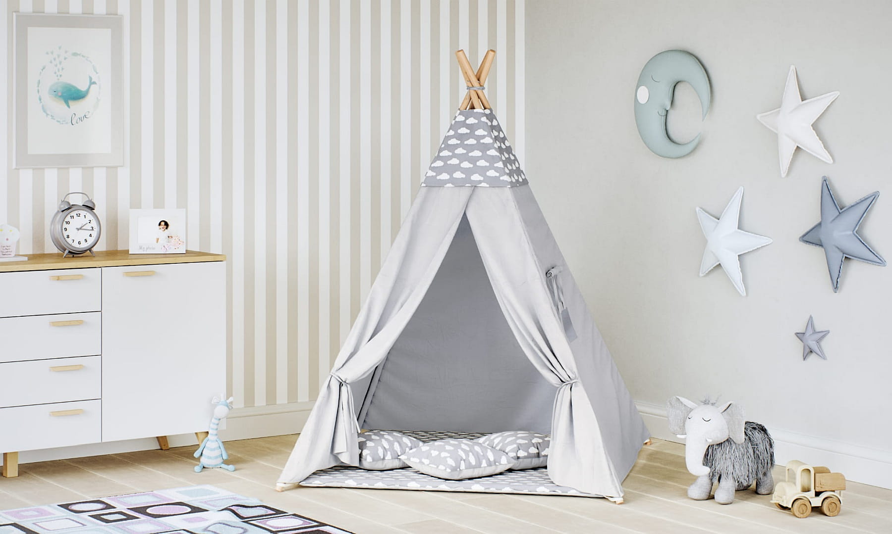 Tipi dla dzieci Chmurki szare szary
