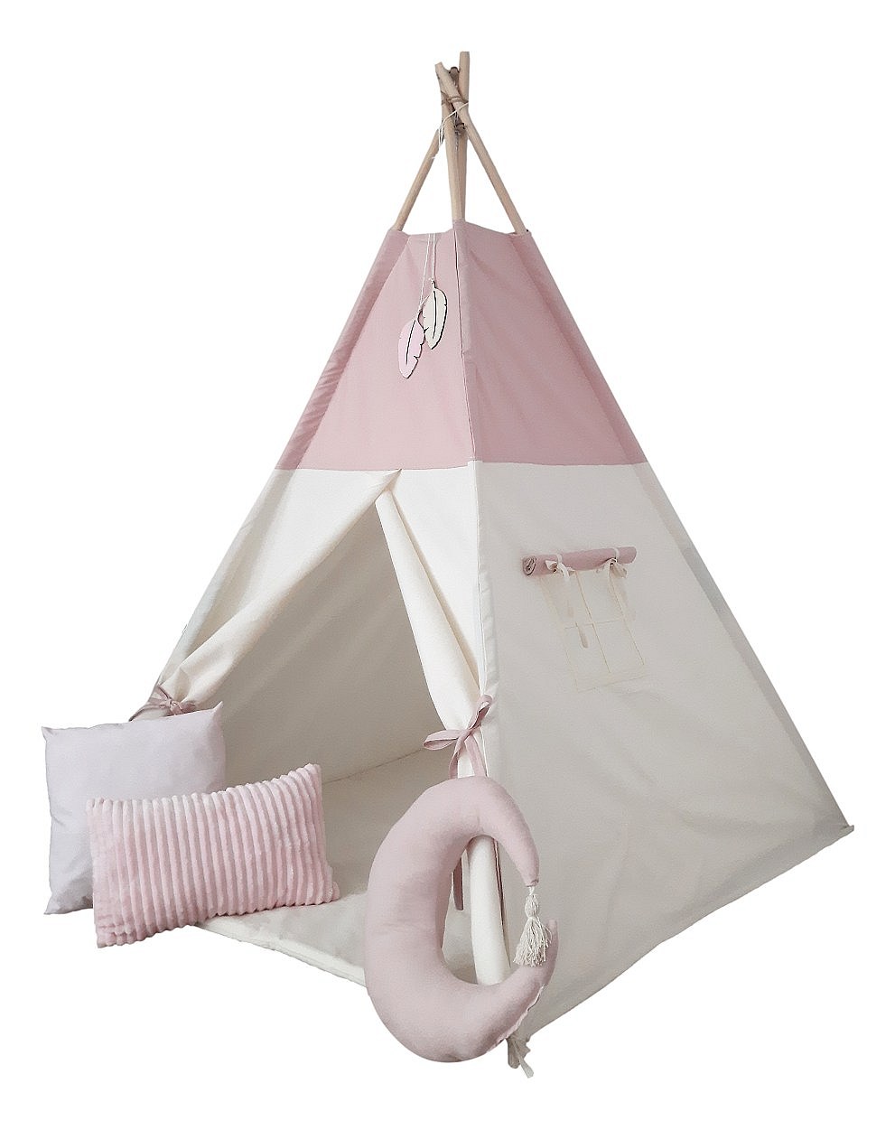 Namiot Tipi w kolorystyce beżowej z brudnym różem to doskonałe miejsce na zabawę Twojego Dziecka