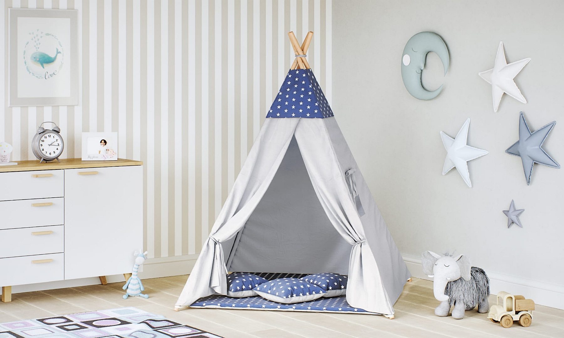 Namiot tipi w środku pomieści nie tylko dziecko, ale również rodzica, który z przyjemnością poczyta maluchowi bajki do snu.
