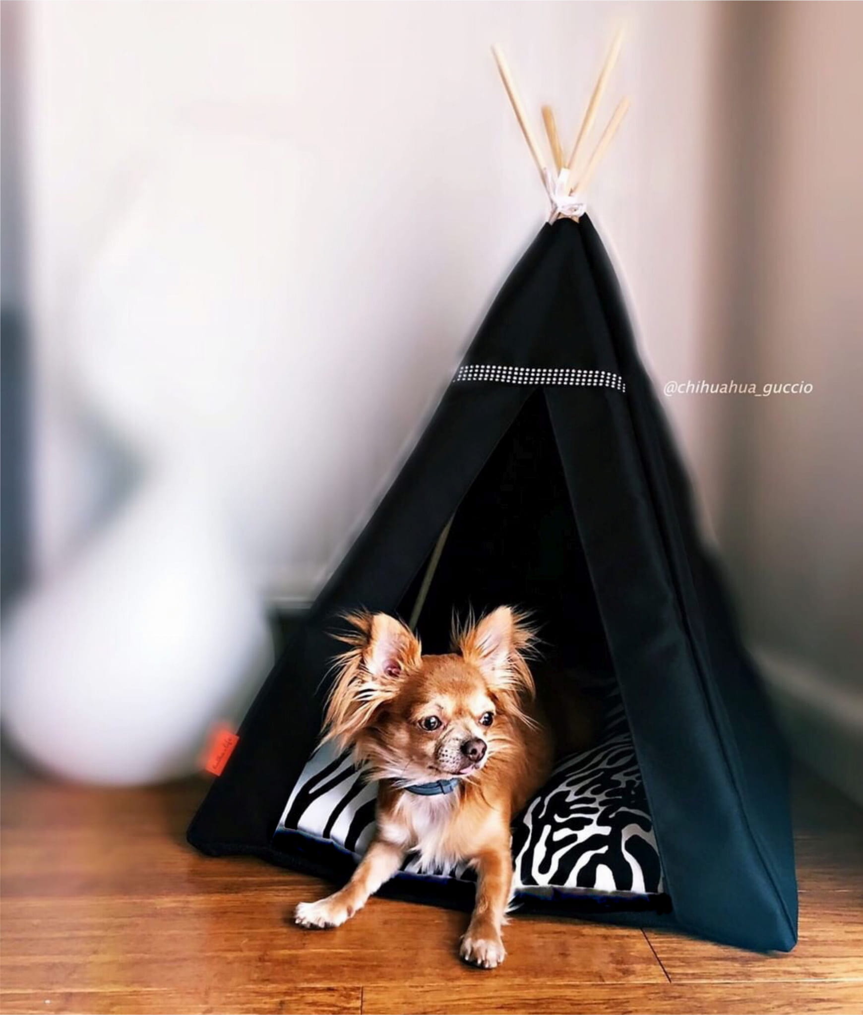 Legowisko jest wystarczająco miękkie a kształt i niewielki rozmiar tipi sprawi, że znajdziesz na nie miejsce nawet w niewielkim pomieszczeniu.