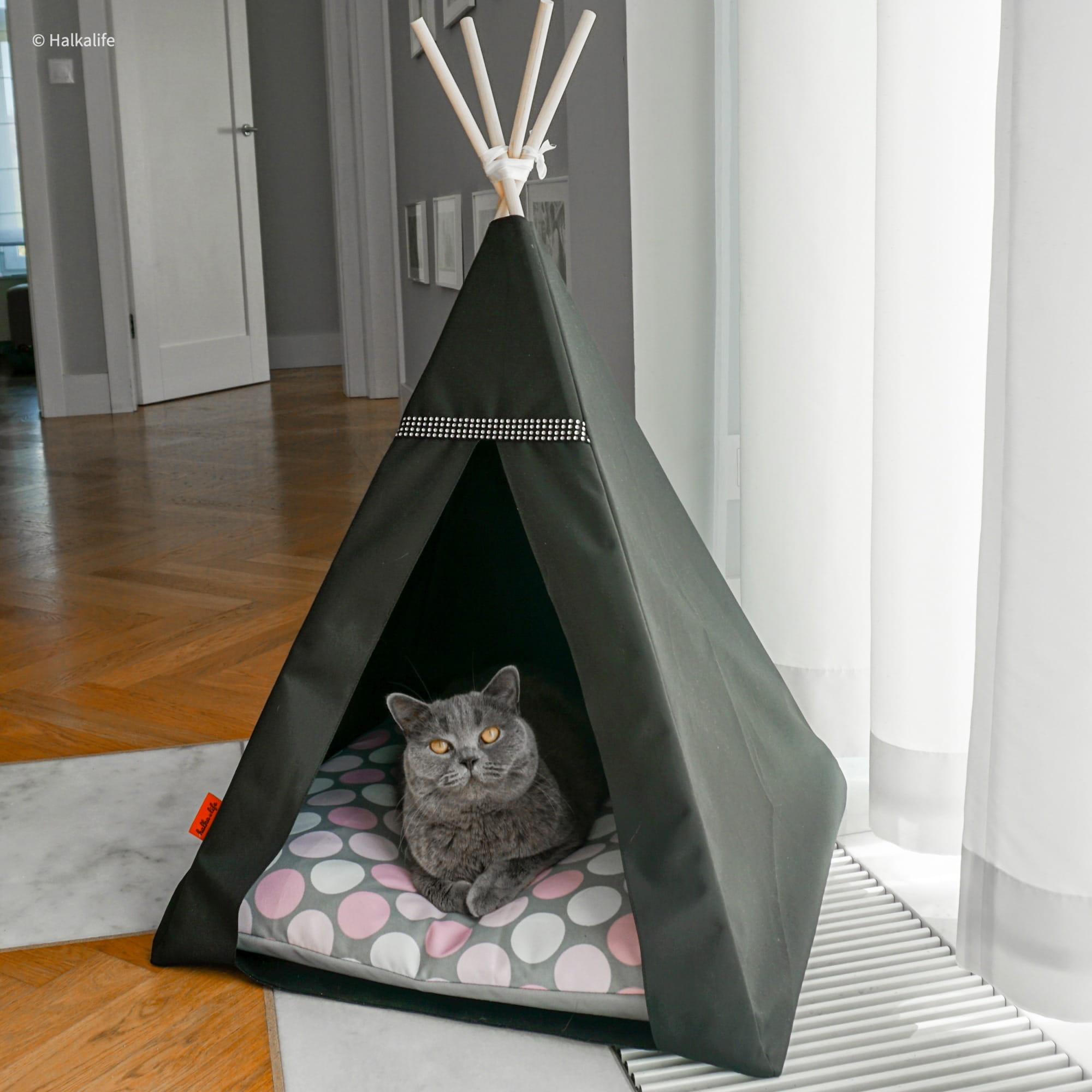 Tipi to legowisko dla psa lub kota, uszyte z najwyższej jakości poliestru wodoodpornego.