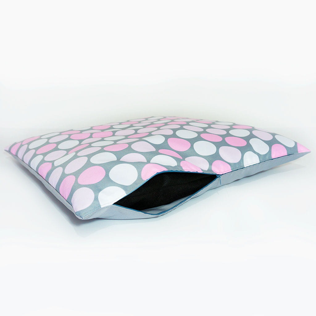 Poduchę wypełniono wysokopuszystą włókniną silikonową, dodając również antyalergiczne kulki silikonowe, które podnoszą komfort i puszystość legowiska. Kulki, dzięki swojej budowie, zapewniają dobrą cyrkulację powietrza oraz elastyczność posłania.